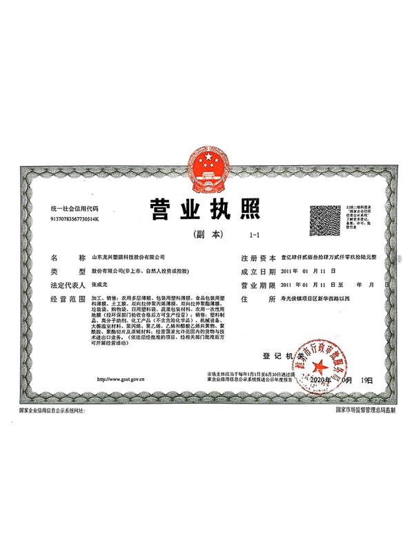 • 龍興塑膜營業執照